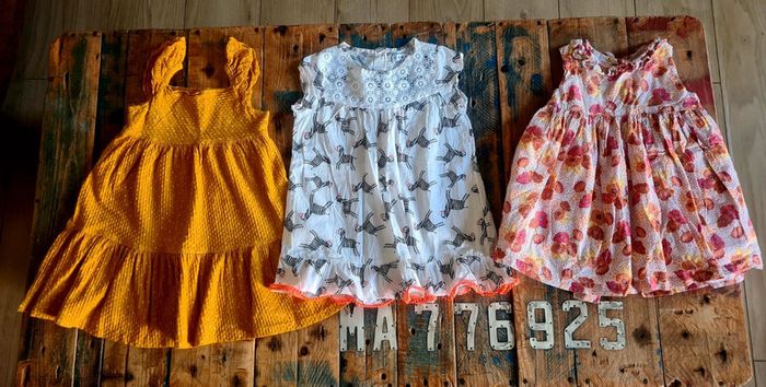 Lot de 3 robes d été pour bebe fille. Articles en tres bon état. Marques orchestra, creeks et dpam. Taille 24 mois. 86 cm