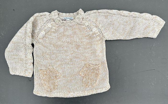 Pull mixte de couleur beige. Petits boutons au col, 2 poches sur le devant, petites torsades sur les manches. En bon état, aucune tâche ni trou, mais à été porté. En coton. Taille 18 mois, marque Vert Baudet. Envoi rapide et soigné, réduction automatique dès 2 articles sélectionnés. Mes autres ventes ici: #18moisgarçonugolola #18moisfilleugolola #18moisfille #18moisgarçon #pull18mois #pull18moisgarçon #pull18moisfille #vertbaudet #vertbaudet18mois