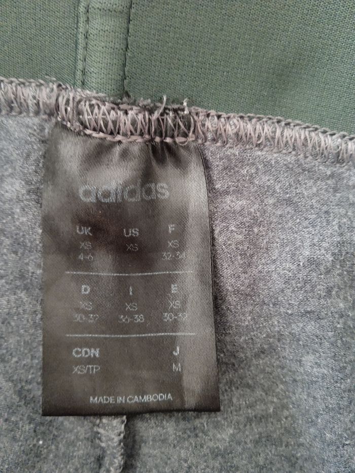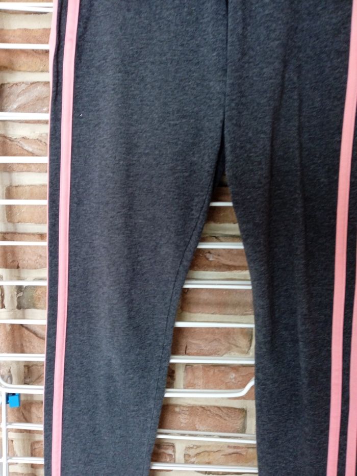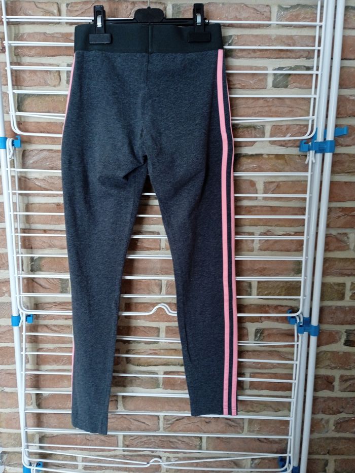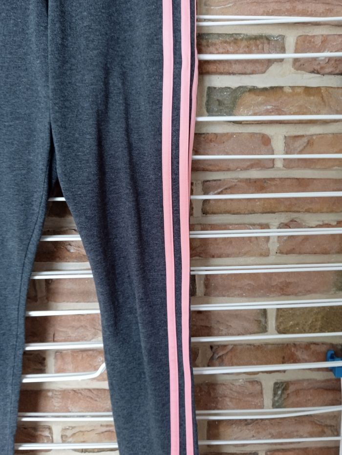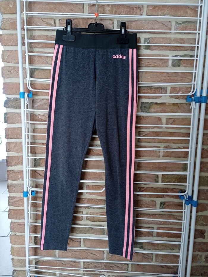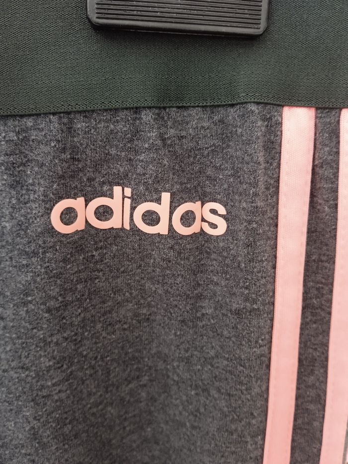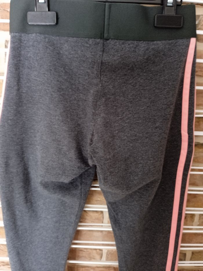 Legging gris avec traits rose sur le côté. Inscription Adidas côté gauche. Taille XS correspond à 32 /34. Léger petit défauts au niveau de la fesse droite petit point de couture voir photos. #fille12ansnade3033