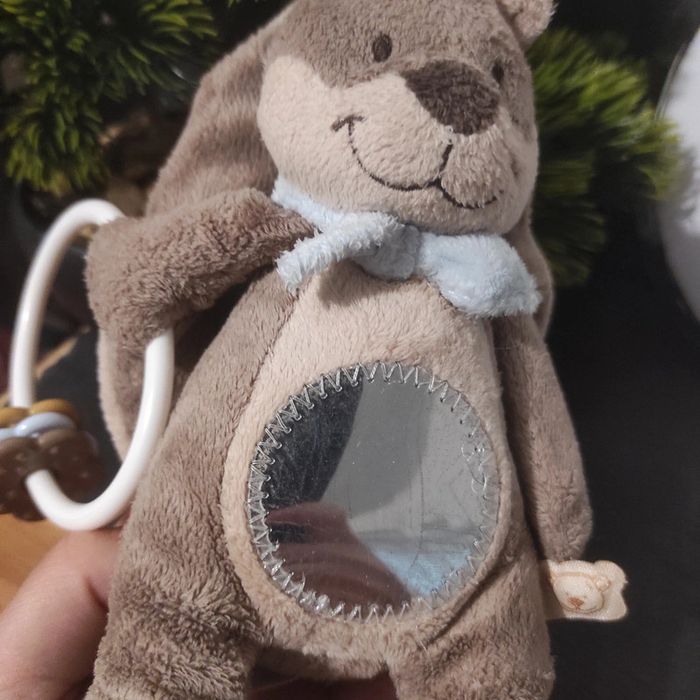 Doudou Castor Léon foulard bleu hochet miroir Noukie's Marron Fleur Miroir Rond - photo numéro 4