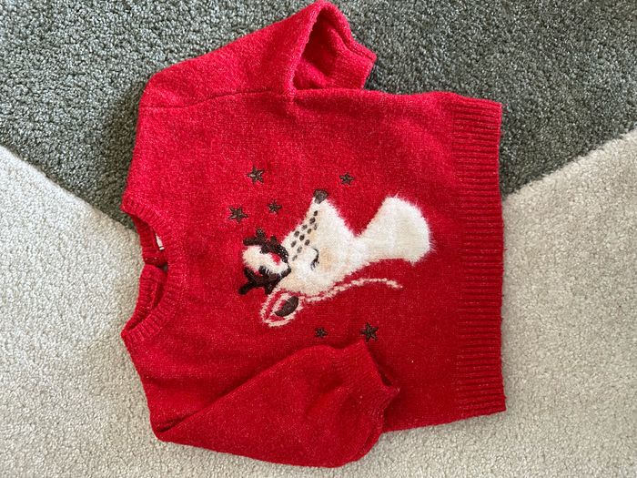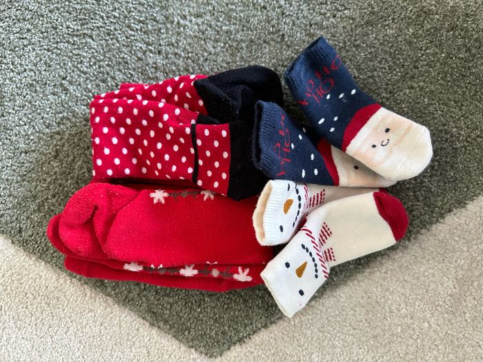 Lot de vêtements de fête - 6 mois - Kiabi/Gemo >1 robe pull >3 pulls >2 collants >2 paires chaussettes taille 15/16 1 bandeau renne - neuf