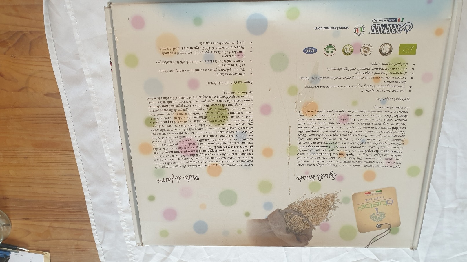 Gigoteuse anti stress grâce aux grains de blé qui sont a l intérieur. Coton biologique. Elle est neuve et avec ses emballages.