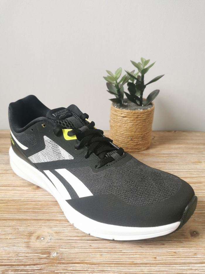 👟ETAT DE L'ARTICLE: 10/10 ✅️ Neuves avec étiquette 🏷 - Jamais portées Vendues avec boîte d'origine 📦 (Boîte légèrement abîmée, voir dernière photo 📷) Baskets Course à pied 🏃‍♂️ Reebok 👣 Pointure 40 👣 25,5 cm 📏 • Matière: Textile - Synthétique • Tissu en mesh pour une meilleure respirabilité 🌬 de la chaussure 👟 • Semelle Ortholite 👣 à mémoire de forme - Memorytech • Renfort talon avec logo Reebok ✒️ • Semelle antidérapante 🧗‍♂️ 🟦
