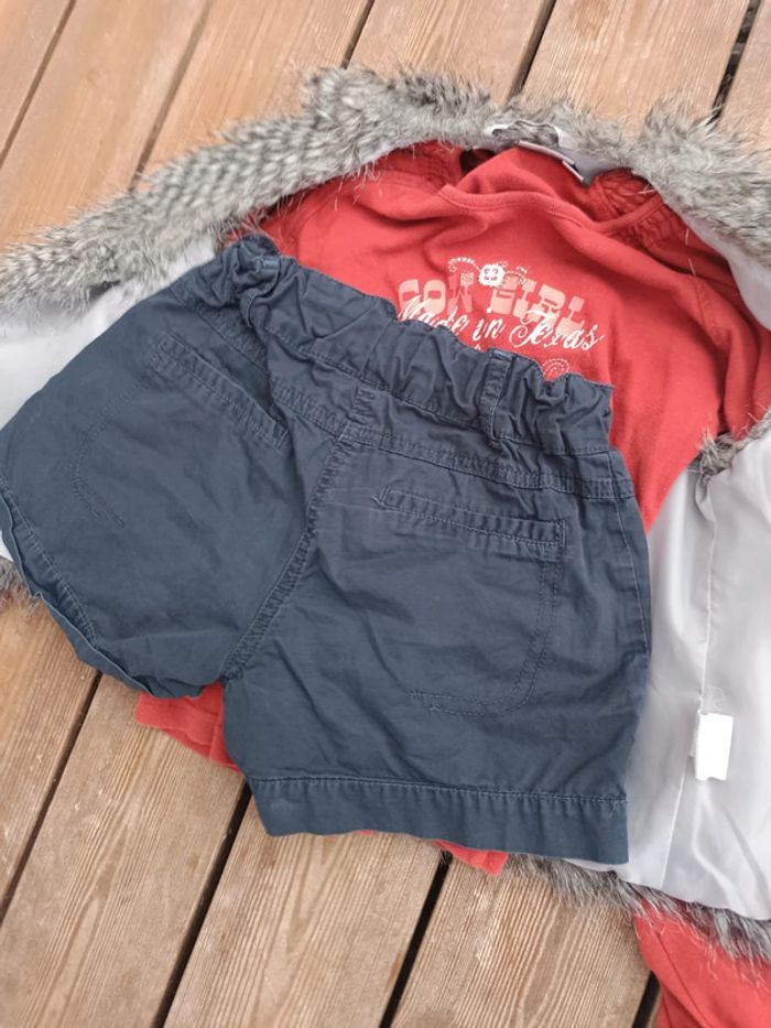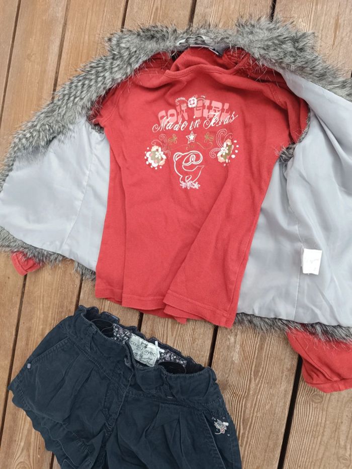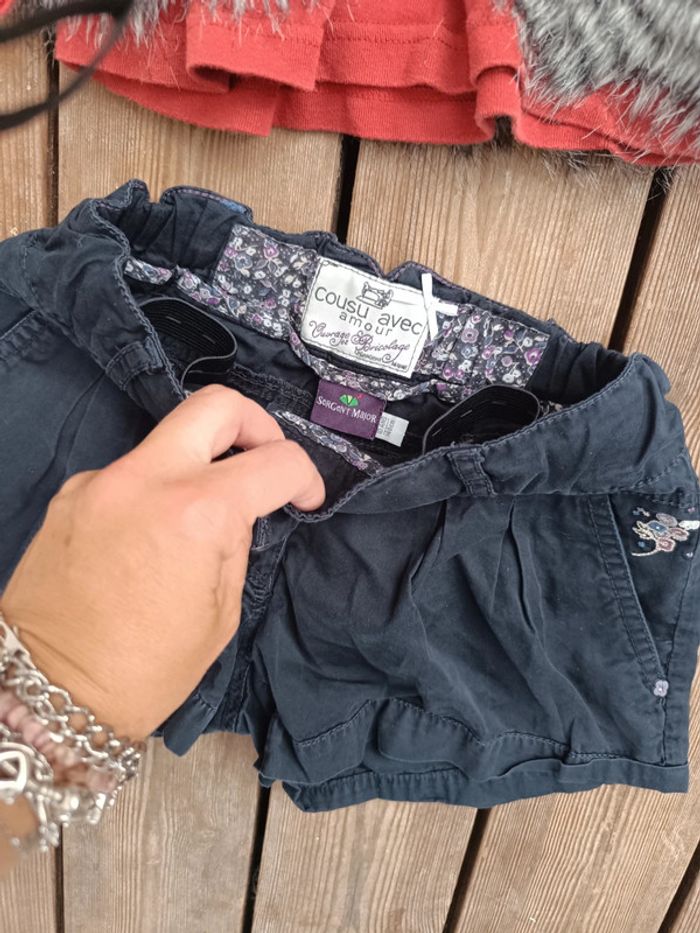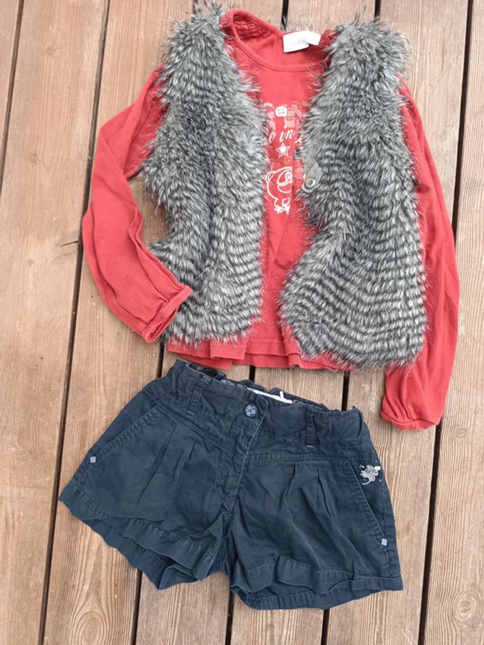 Lot fille comprenant Short sergent major T-shirt ML Kiabi Veste sans manches poil 3 pommes marqué 8 ans mais taille grand #lola10ans