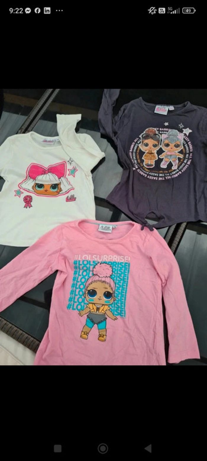 Ensemble t-shirt jean 7 ans 3 t-shirt ML poupée LOL + 1 jeans droit orchestra #lola7ans
