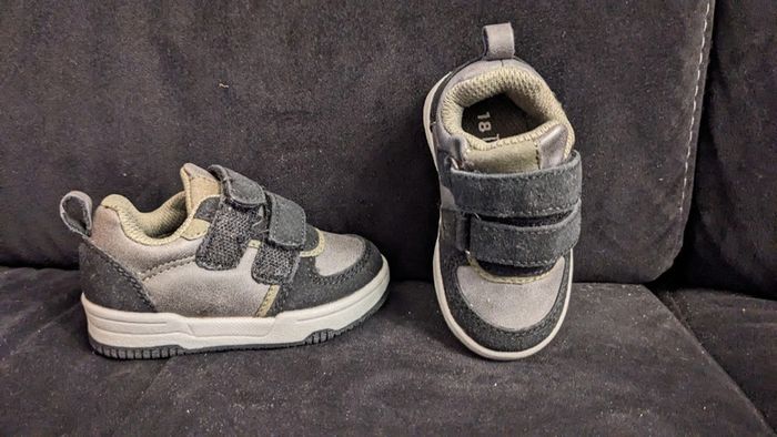 Paire de petites baskets garçon pointure 18 marque Tex à scratchs noires et grises. État proche du neuf (voir photos). Mes autres annonces du même âge qui porte en moyenne une pointure 18 #joeypotter91_garçonsixmois #joeypotter91_garçonneufmois #joeypotter91_garçondouzemois