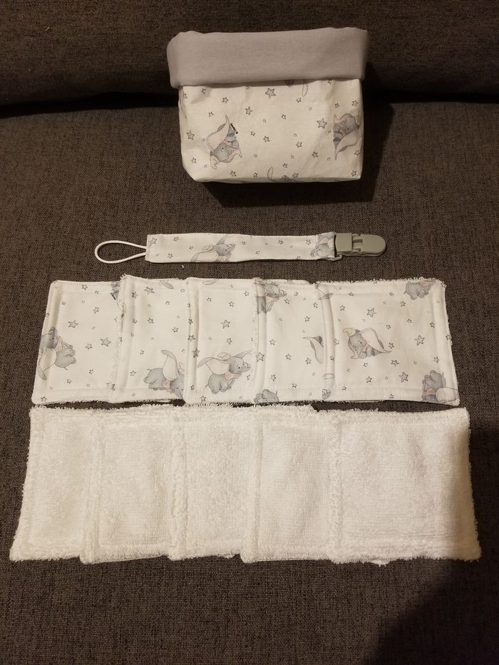 Corbeille + 10 cotons en fibre de bambou bio + un accroche tetine N hesitez pas a me Demander les tissus :)