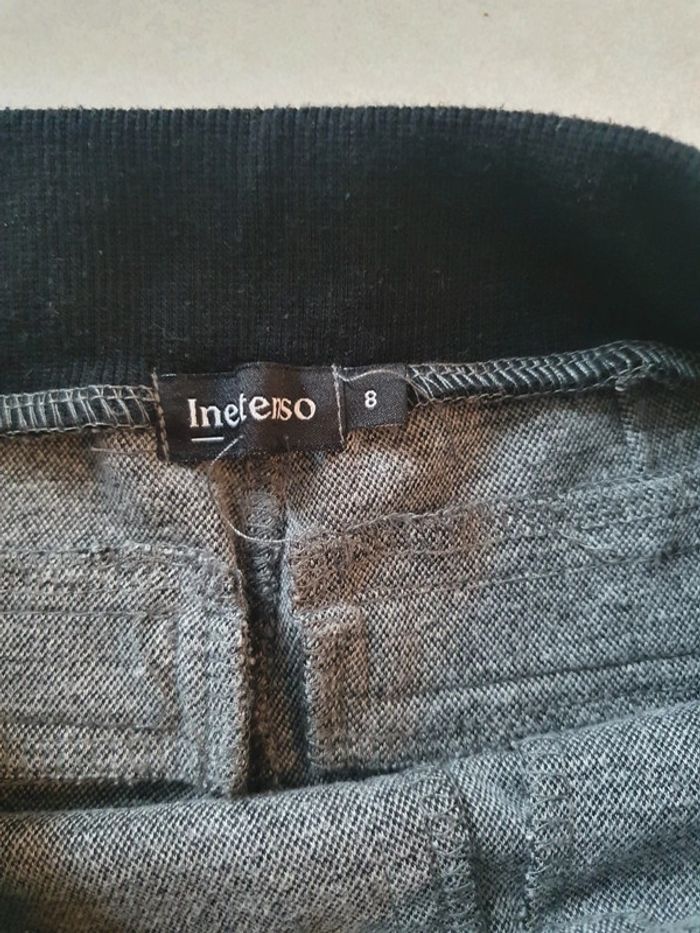 Pantalon enfant en taille 8 ans. Porté mais reste en très bon état. #pantalon #bas #inextenso #gris #blanc #rayé