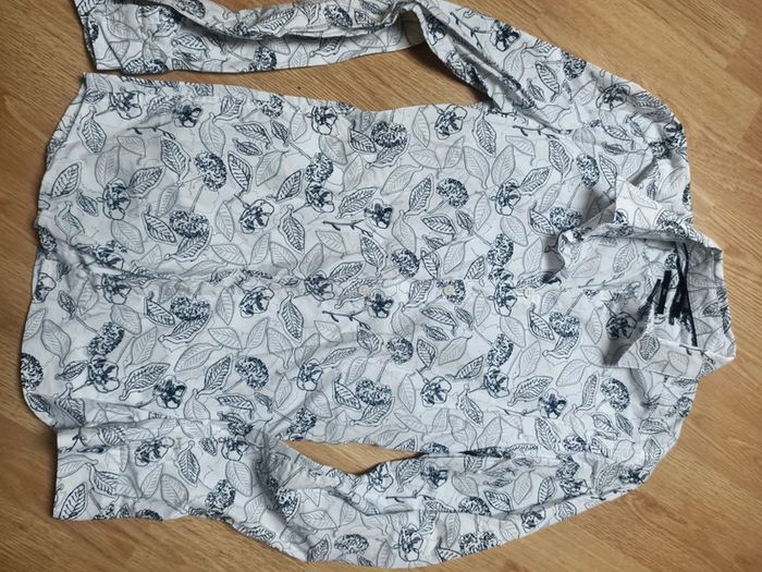 Magnifique chemise blanche a fleur bleu jules - photo numéro 1