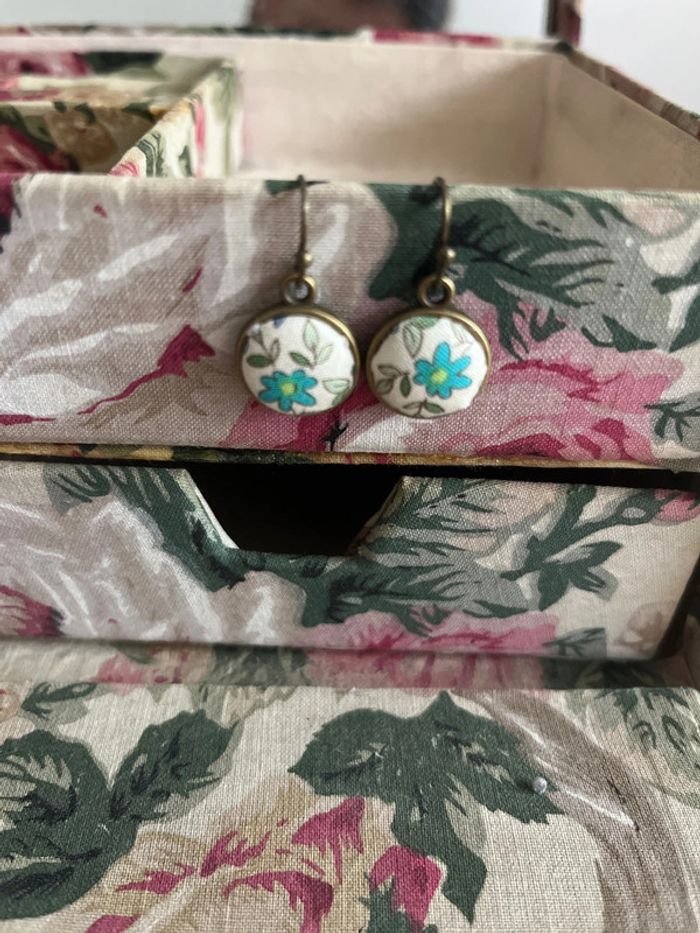Boucles d’oreilles pendantes tissu neuves - photo numéro 3