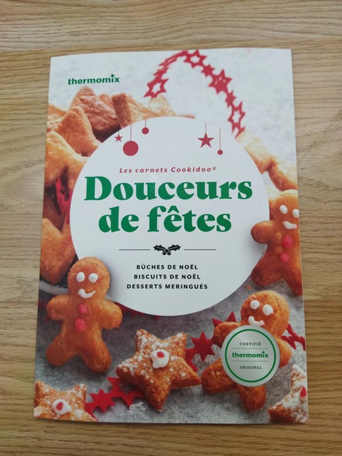 Livre de cuisine THERMOMIX Douceurs de fêtes Les carnets Cookidoo. Neuf non ouvert car je le possède en double. Pour préparer bûches et biscuits de Noël ainsi que des desserts meringués