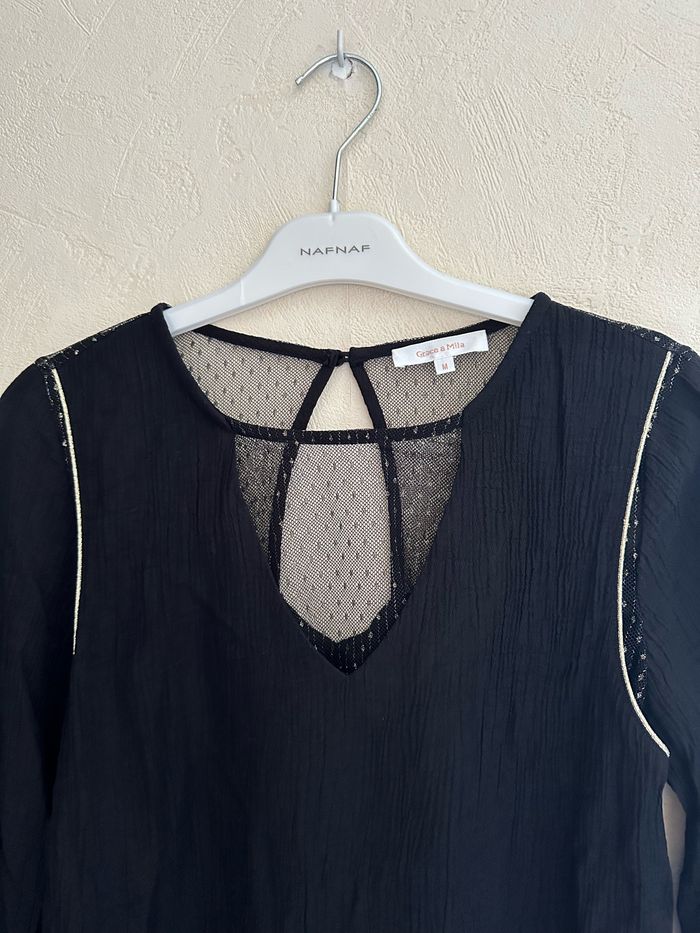 Élégante blouse femme noire avec manches 3/4 col en V taille M Grace&Mila - photo numéro 1