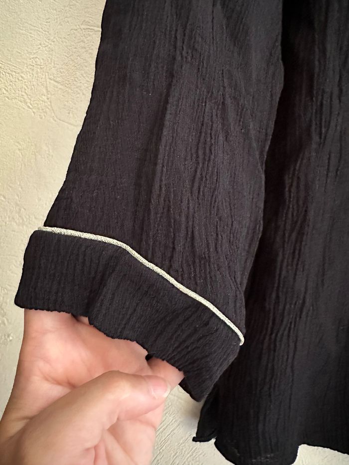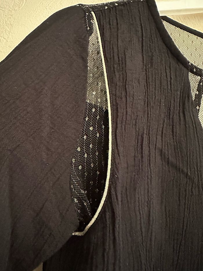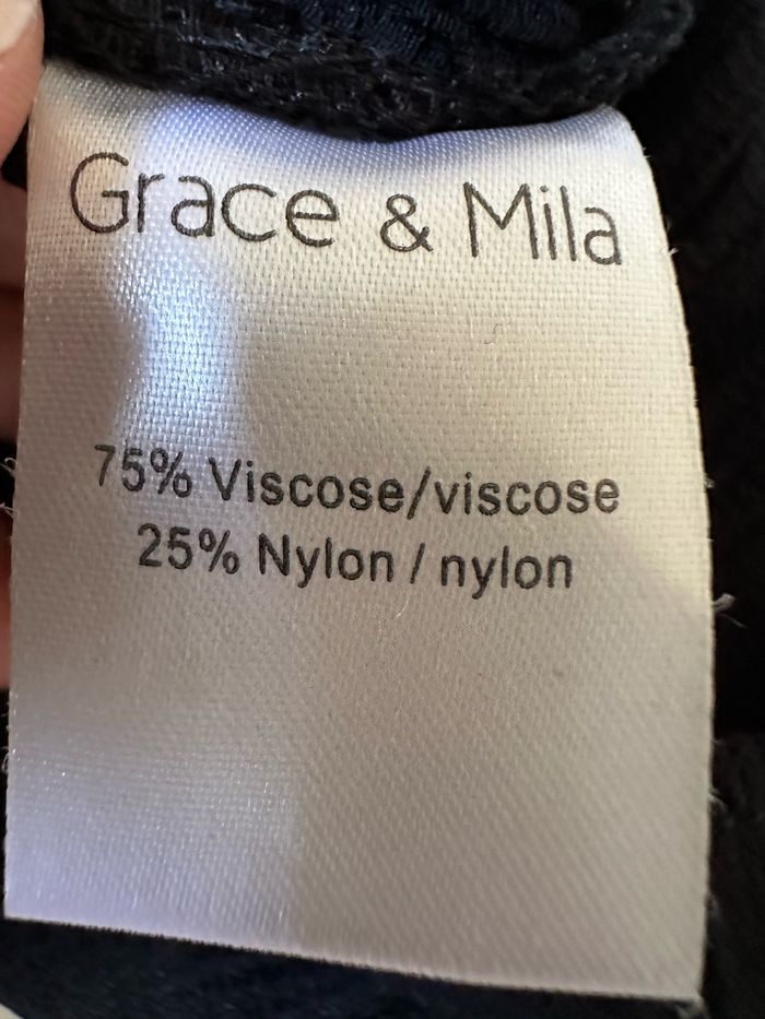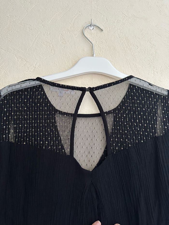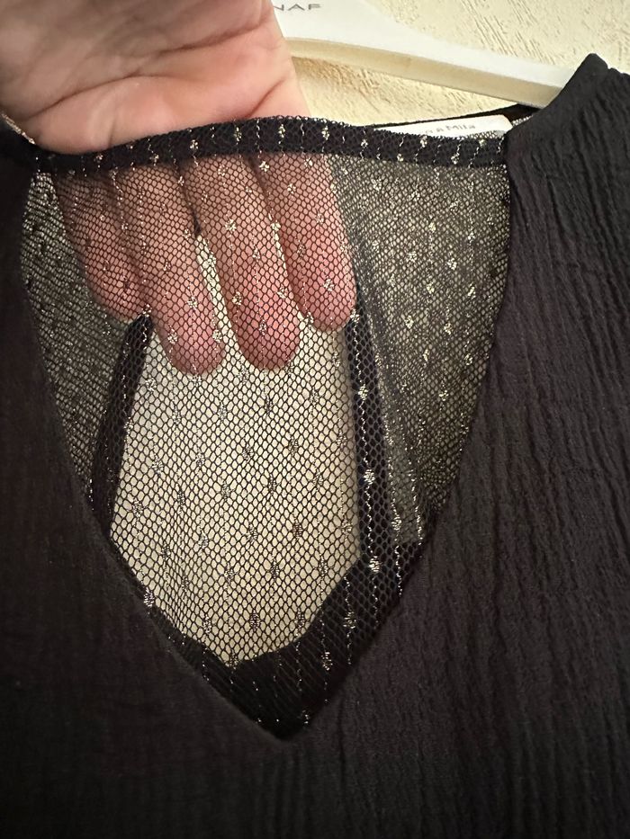 Élégante blouse femme noire en 75% viscose et 25% nylon (fils métallisé doré) avec manches 3/4 col en V taille M Grace&Mila .