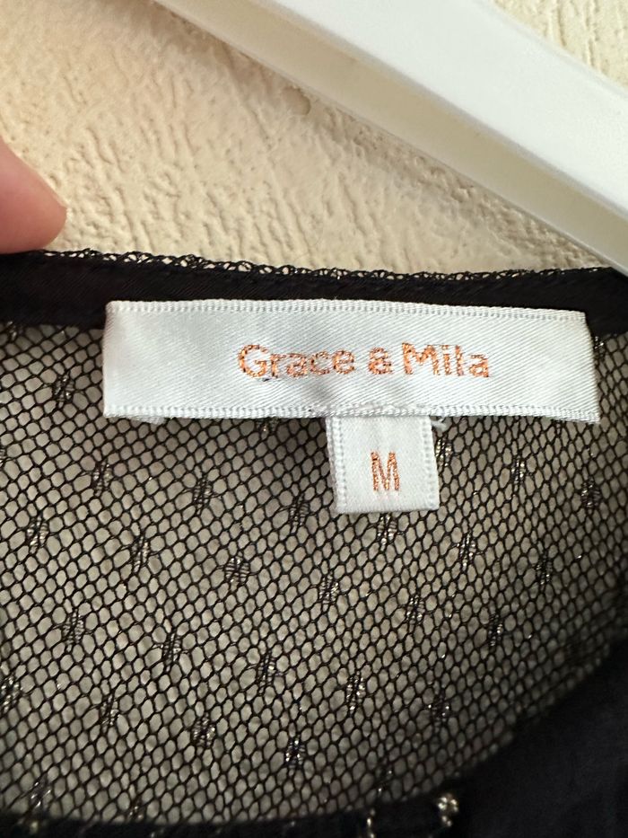 Élégante blouse femme noire avec manches 3/4 col en V taille M Grace&Mila