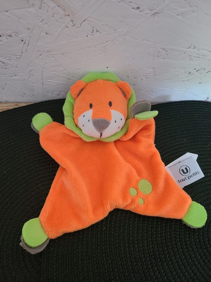 Doudou plat lion U TOUT PETITS orange vert - photo numéro 1