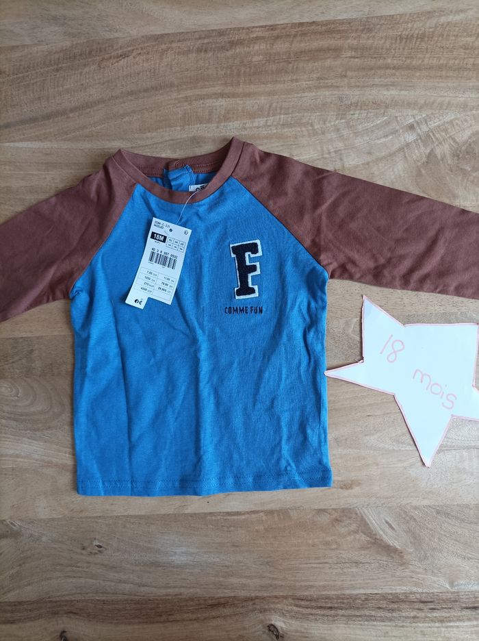 Tee-shirt manches longues, maillot de corps neuf avec étiquette 18 mois