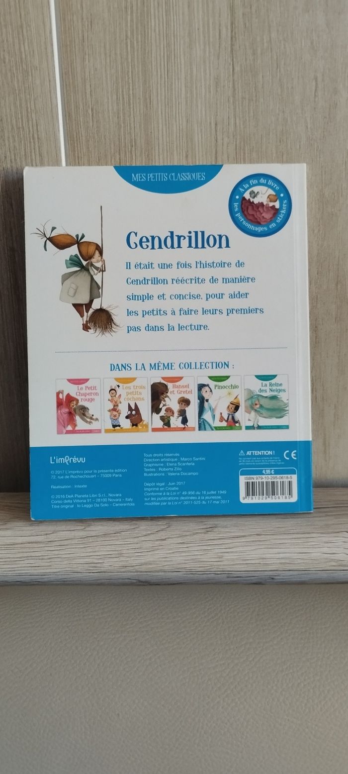Collection mes petits classiques Cendrillon avec de jolis stickers Il était une fois l'histoire de Cendrillon réécrite de manière simple et concise, pour aider les petits à faire leurs premiers pas dans la lecture. Très bon état.