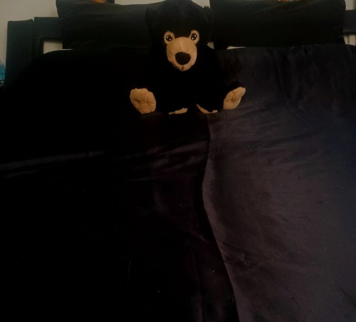 Peluche Ours Noir idéale pour la décoration ou pour faire des câlins :) Il n'attend plus que vous!!