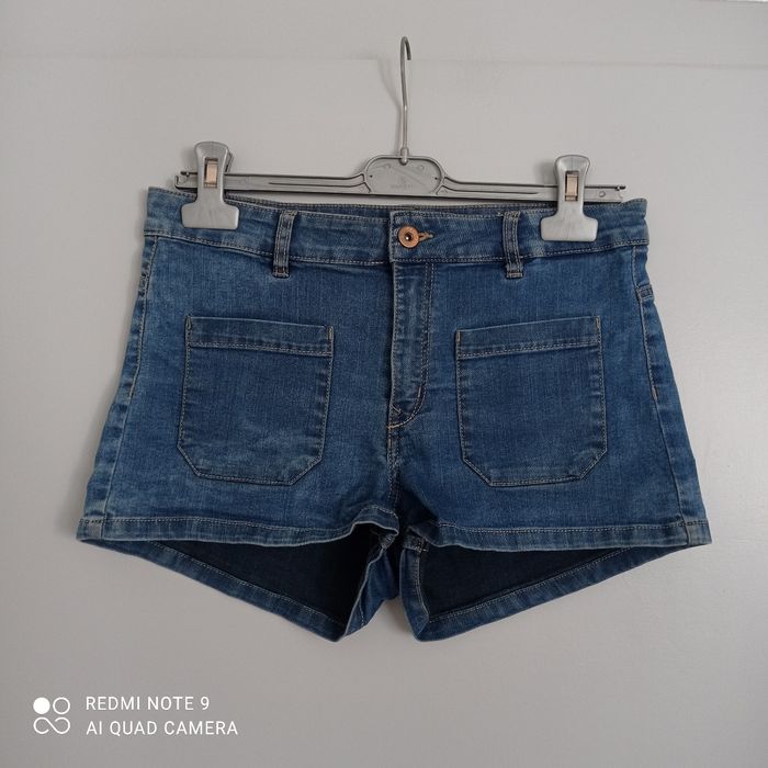 Étiqueté t40 mais taille plus petit selon moi. Voici la mesure prise à plat de la largeur à la taille : 38cm. Jolies poches. Très style rétro seventies. C9