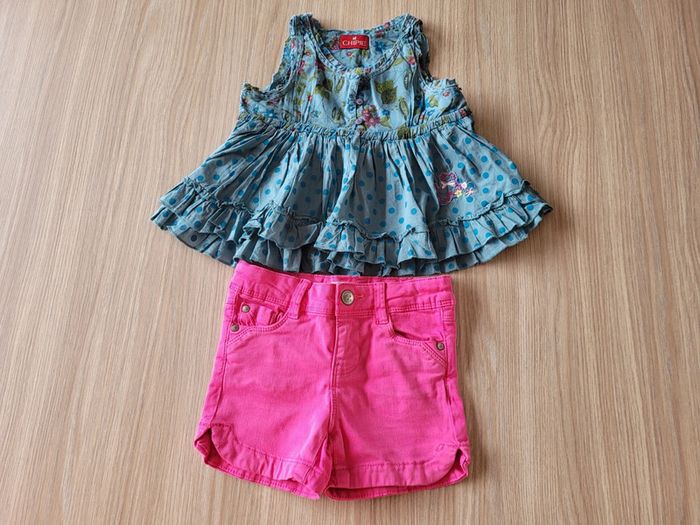 Short okaidi + tee shirt chipie 4 ans. - photo numéro 1