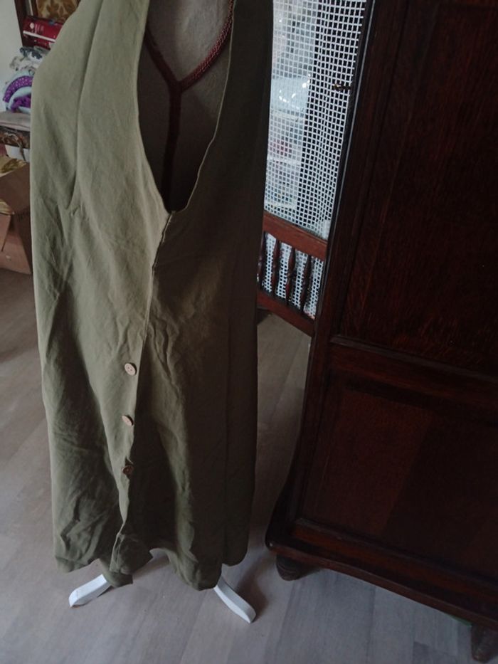 Robe kaki sans manche taille XL en 95% coton et 5% viscose. État parfait. Sur photo la couleur n rend pas bien. Elle est Kaki.