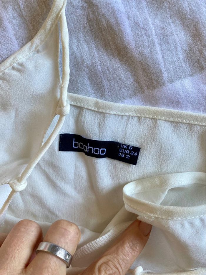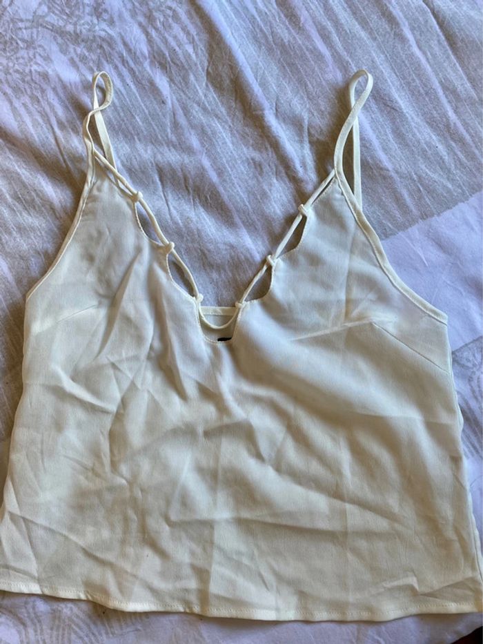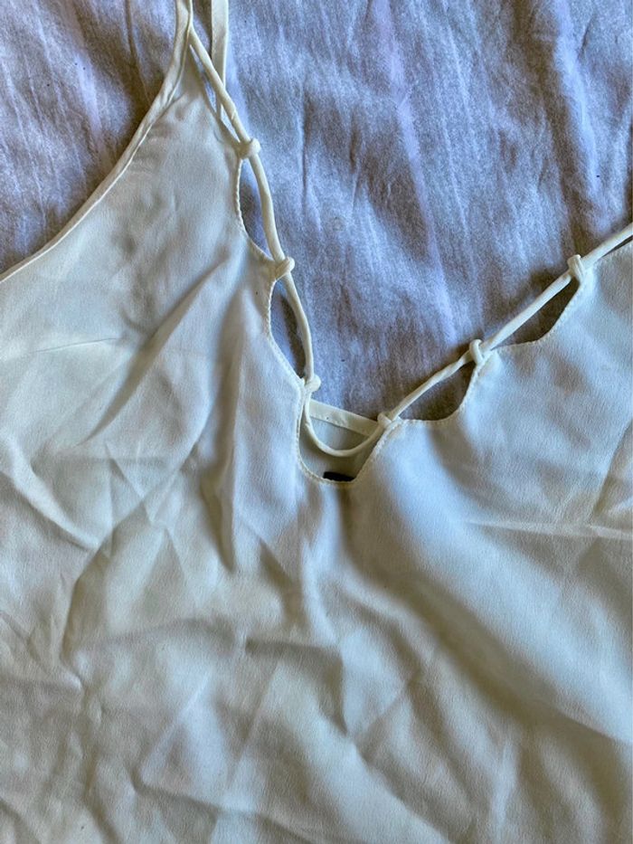 Petit débardeur blanc avec laçage La matière le fait paraitre beige mais il fait plutôt blanc creme