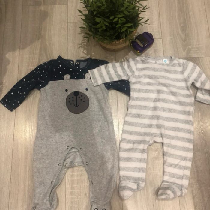 Deux tenus Deux combinaisons et deux pyjama velours Taille 6 mois