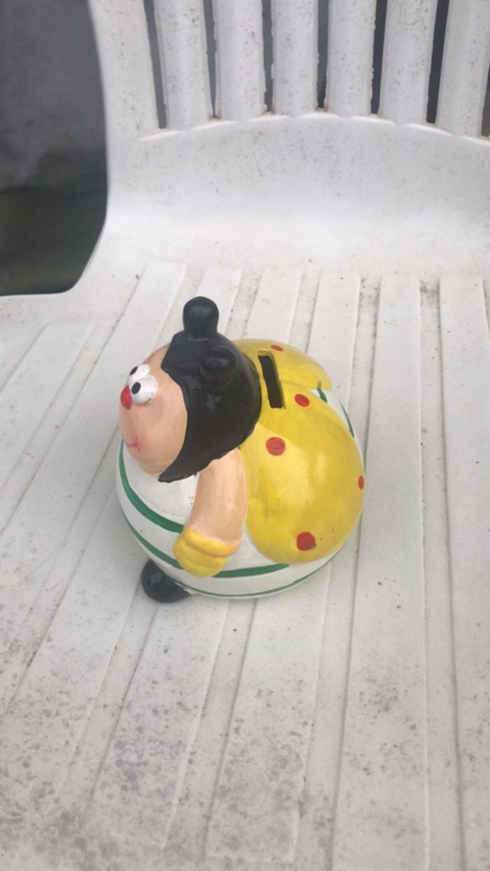 Tirelire pour enfants en forme de coccinelle jaune, en bon état