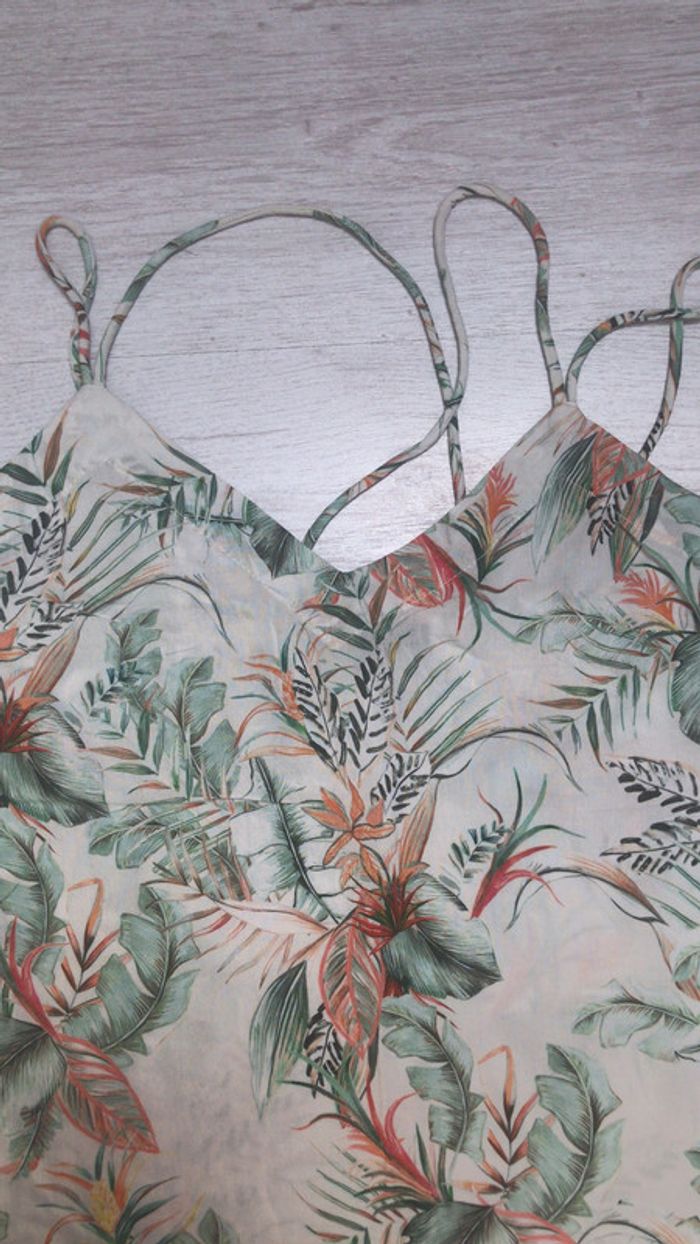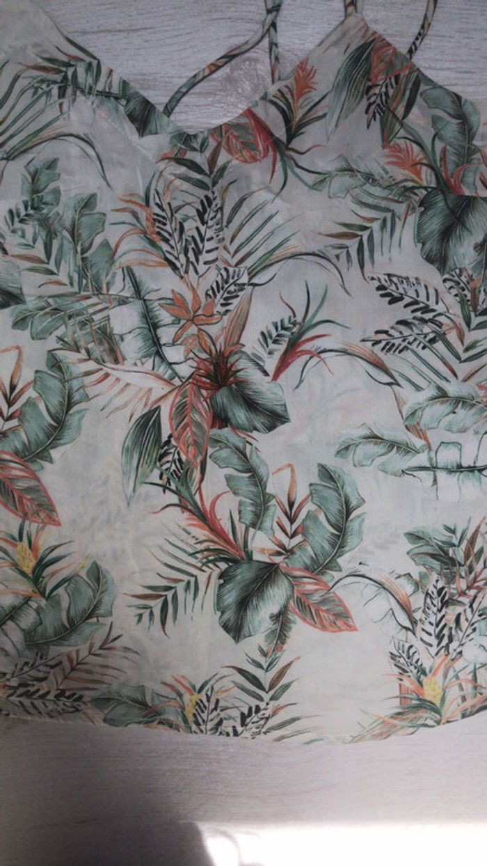 T-shirt Etam avec bretelles croisées dans le dos et motif floral, en bon état, pour un 34