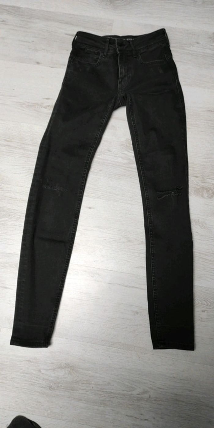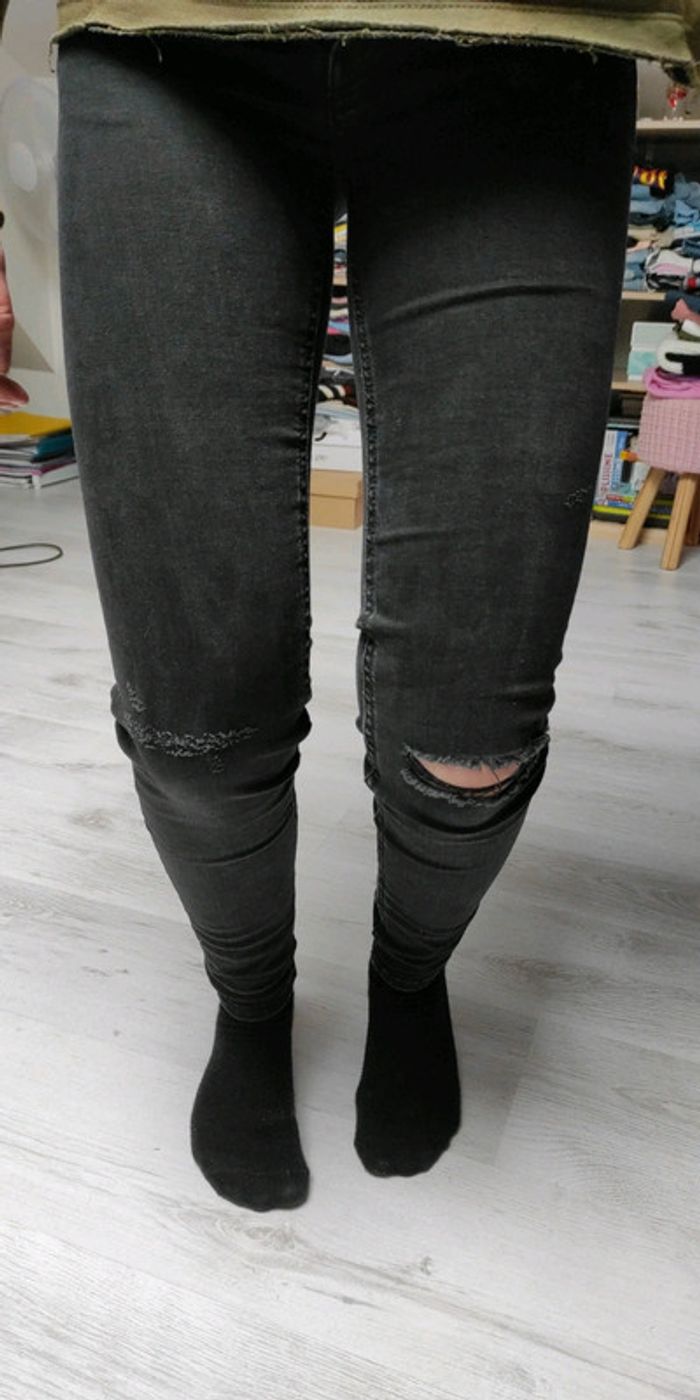 Jean's Bershka noir avec sur un genoux un trou et sur l'autre effet usé.en très bon état