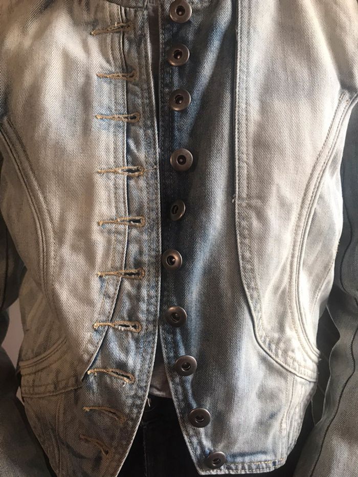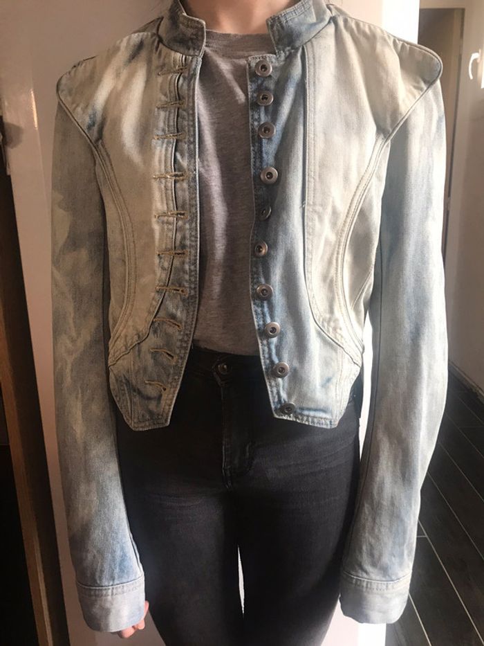 veste en jean bleu clair délavé . forme de la veste originale. taille 36. marque morgan