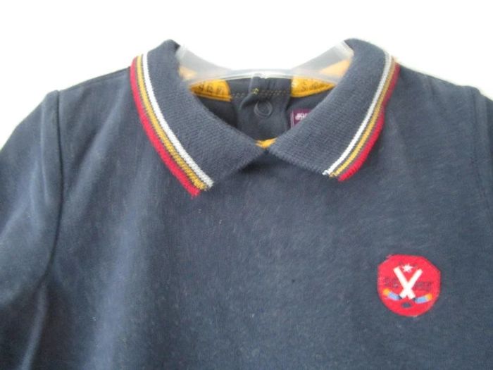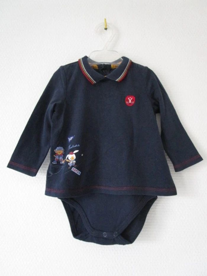 Polo avec body intégré de marque Sergent Major taille 6 mois Bleu marine Bord du col rouge/moutarde/blanc Petits dessins 100% coton En parfait état #mamanbrade59garçon6mois
