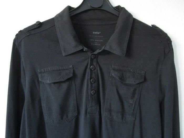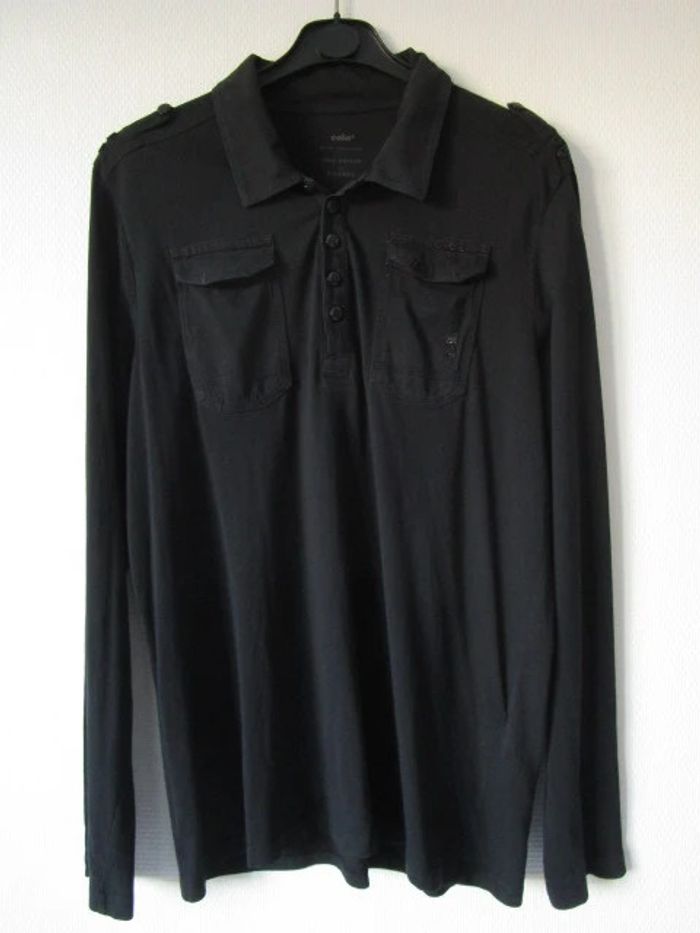 Polo noir de marque Celio taille XL Manches longues Matière t-shirt Poches poitrine 100% coton Largeur carrure : 46 cm Largeur aisselle à aisselle : 60 cm Longueur : 76 cm En très bon état #mamanbrade59hommexl