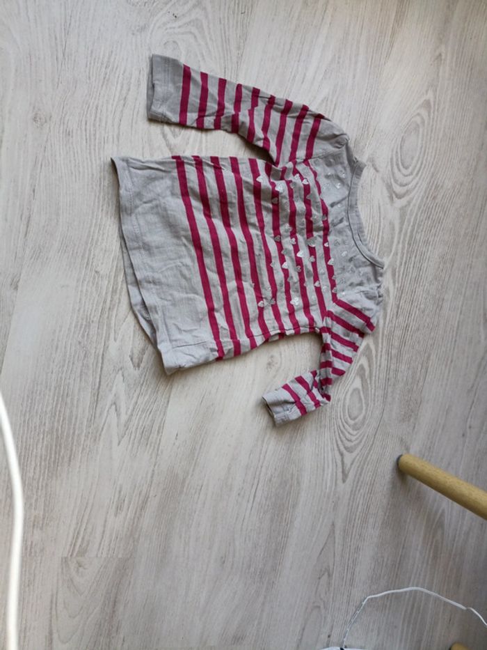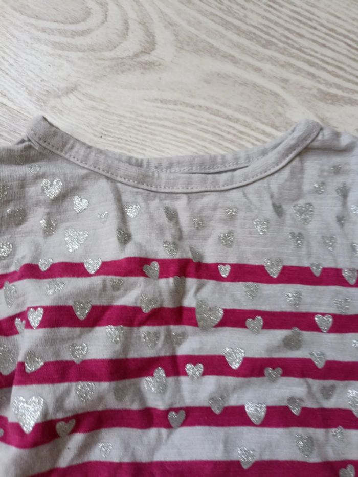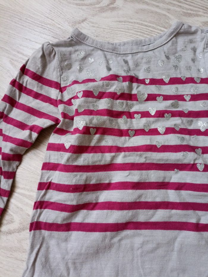 T shirt rayé gris et rose avec imprimé coeur en paillettes argentées #mlledrey522ansfille #mlledrey5224moisfille