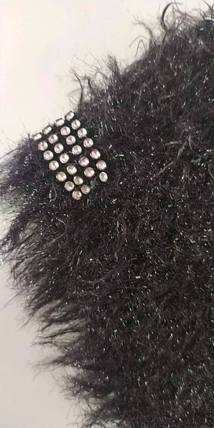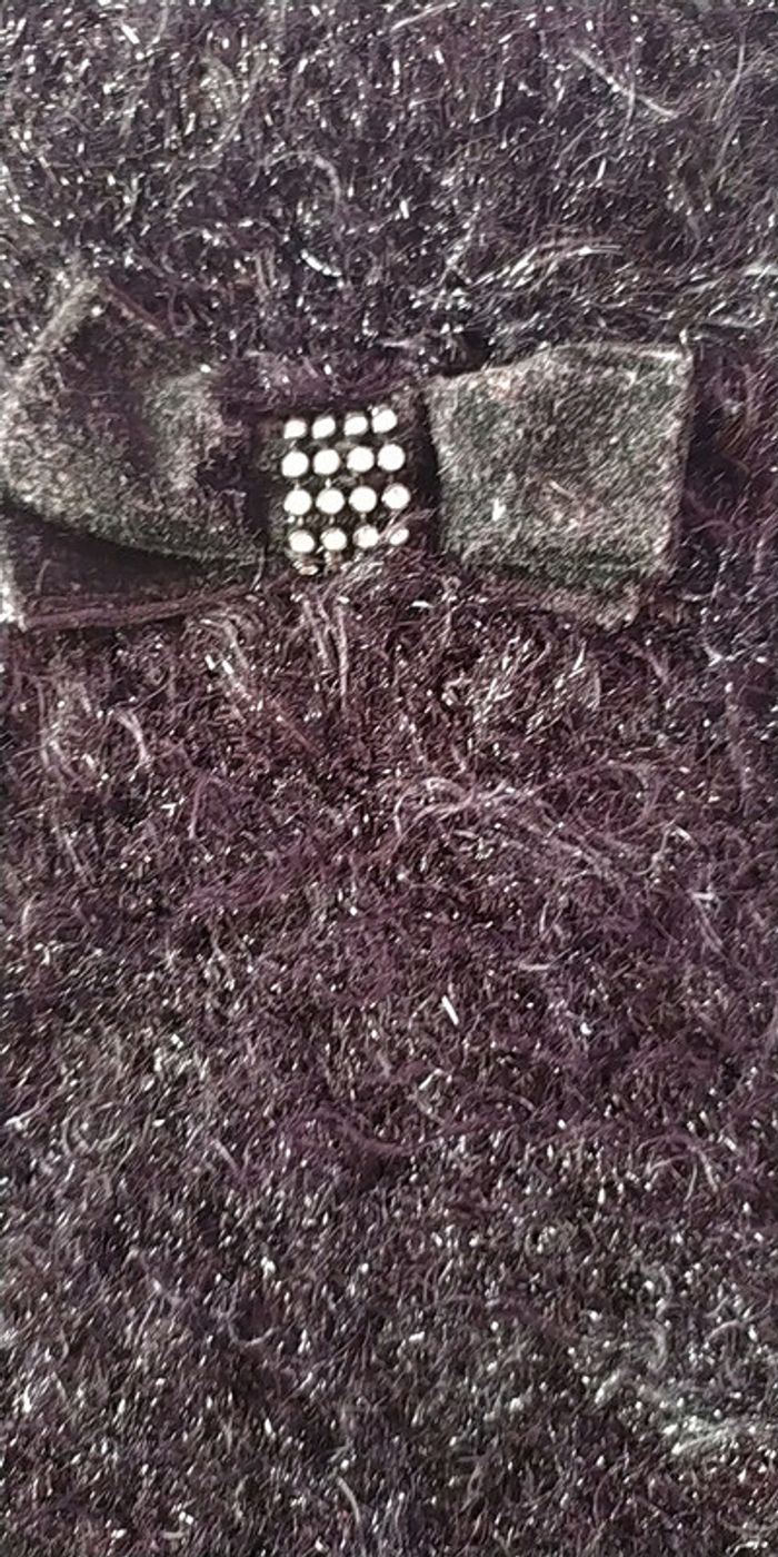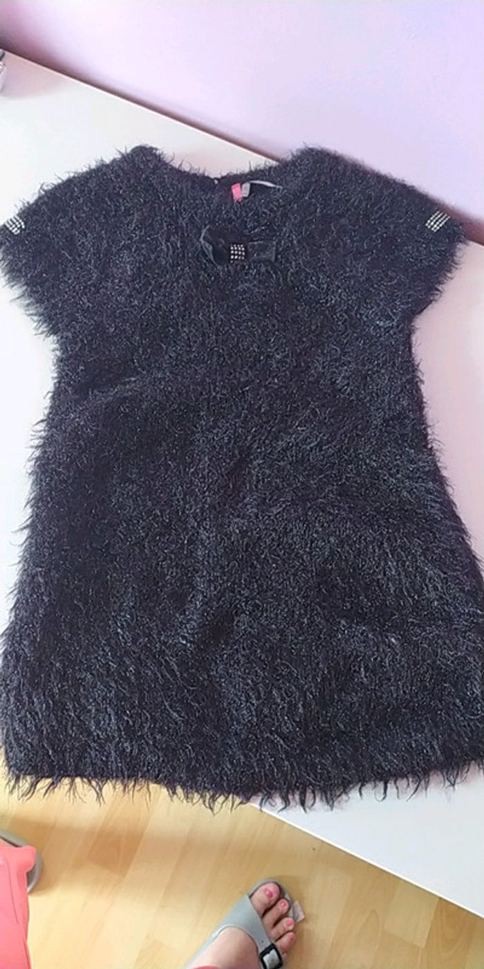 Robe noir effet poilu manche courte noeud avec strass sur l avant Détail strass sur les manches (manque un strass sur une manche cf photo) #mlledrey524ansfille