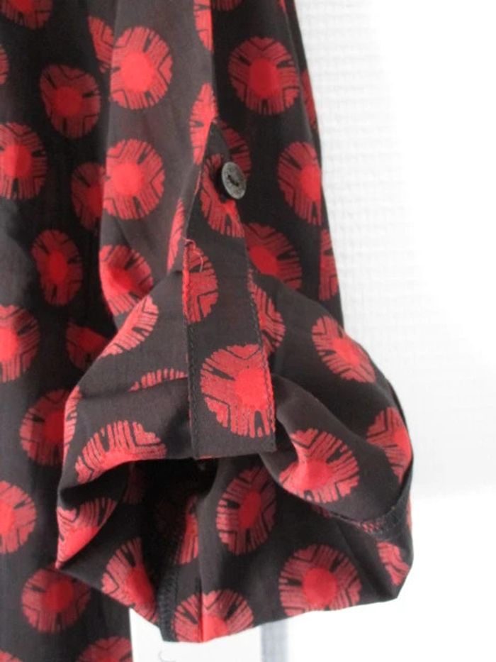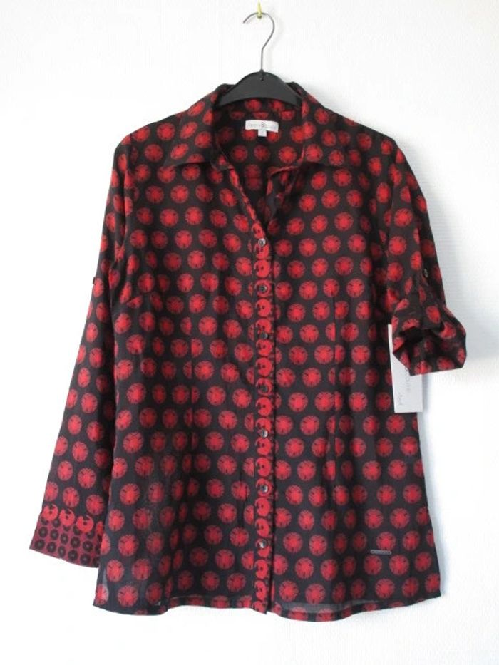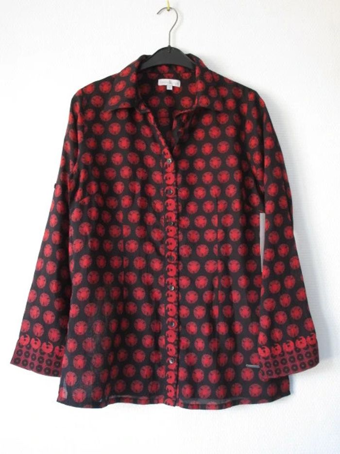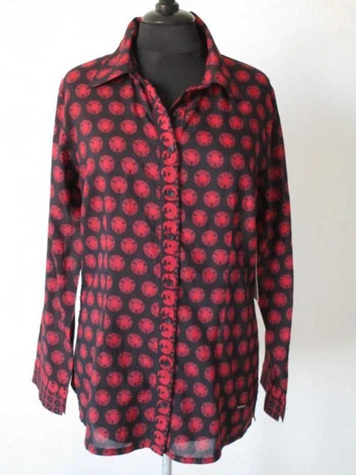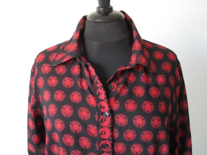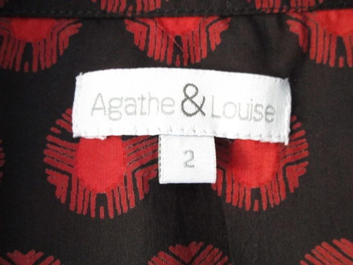 Chemise de marque Agathe & Louise taille 2 soit 40 Noire imprimé rouge orangé Manches longues qui peuvent être retroussées Un peu longue 100% viscose Largeur carrure ; 40 cm Largeur aisselle à aisselle : 50 cm Longueur : 72 cm NEUVE avec étiquette #mamanbrade59femme40