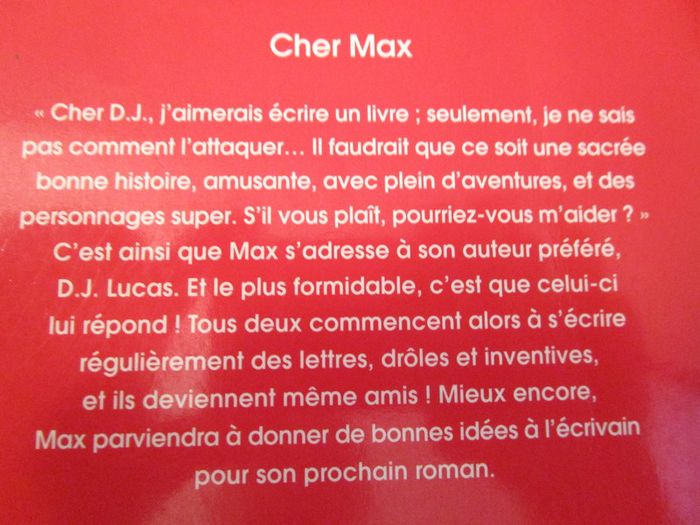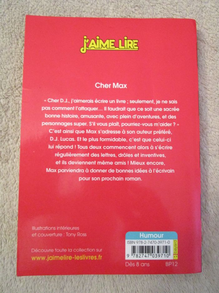 Cher Max D.J. Lucas alias Sally Grindley Illustré par Tony Ross Collection J'aime lire Bayard poche Destiné aux 6/8 ans En très bon état, juste un nom noté à l'intérieur #mamanbrade59albumsenfant