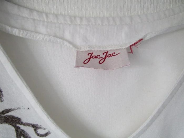 T-shirt blanc fleurs beige Jac Jac 38 TBE - photo numéro 7