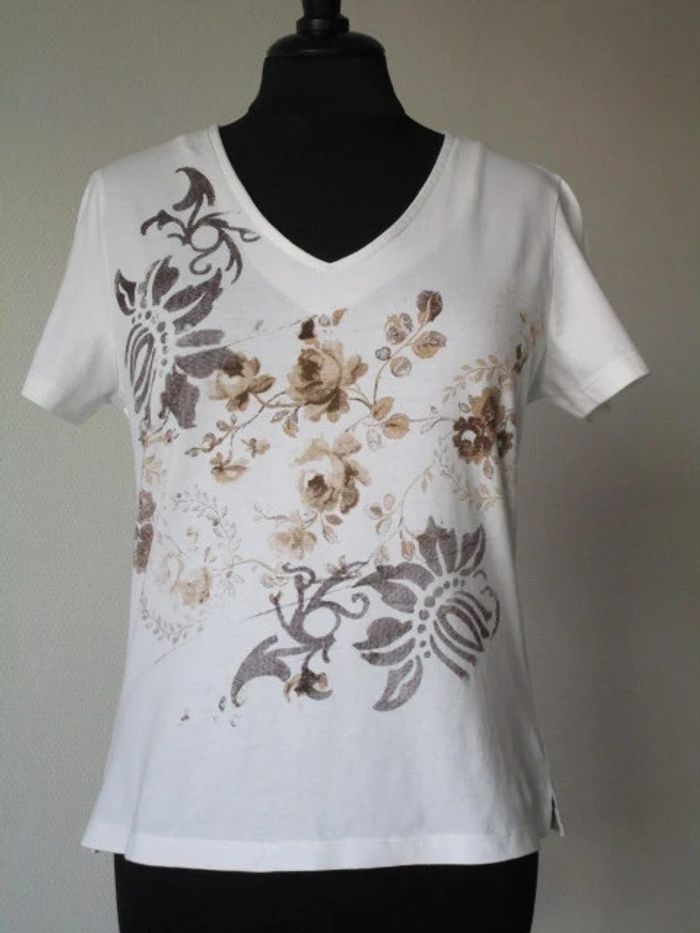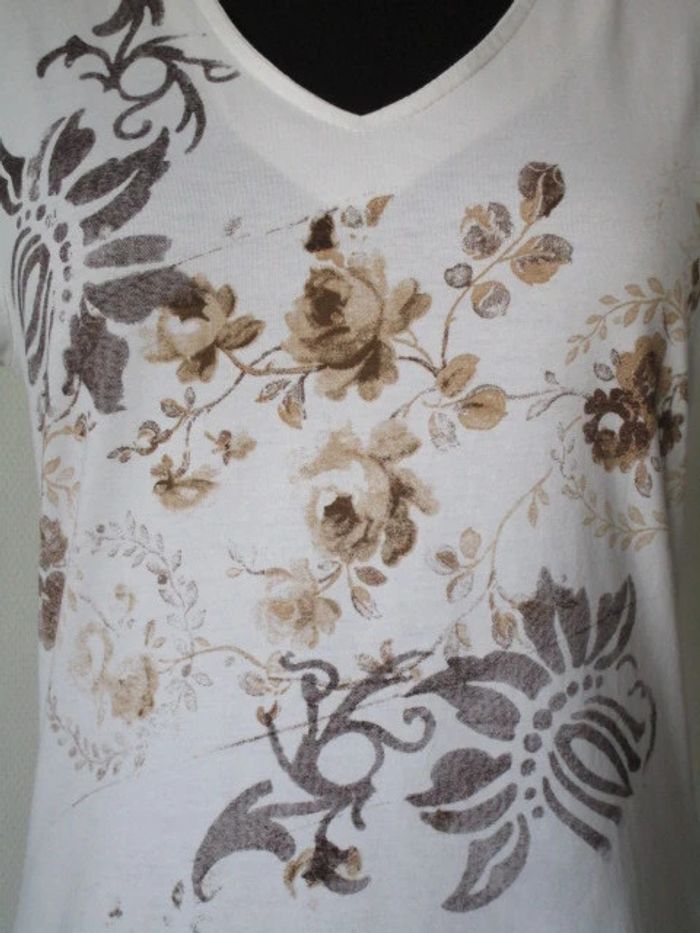 T-shirt blanc fleurs beige Jac Jac 38 TBE - photo numéro 9