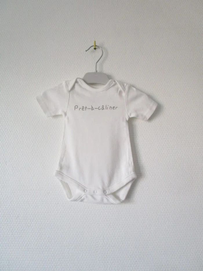 Body mixte blanc cassé de marque C&A taille 1 mois Manches courtes Message "Prêt-à-câliner" 100% coton bio En très bon état #mamanbrade59fille1mois #mamanbrade59garçon1mois