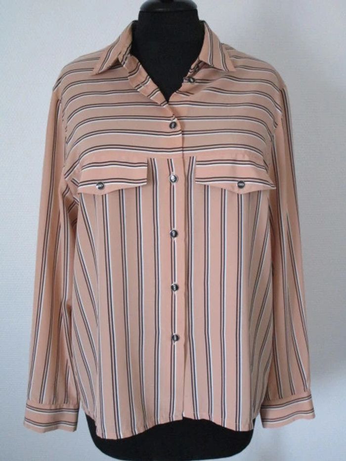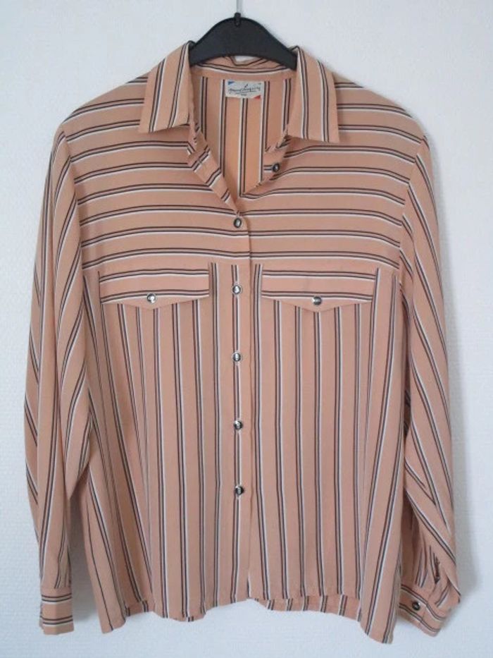 Chemisier abricot rayé noir vintage 42 TBE - photo numéro 2