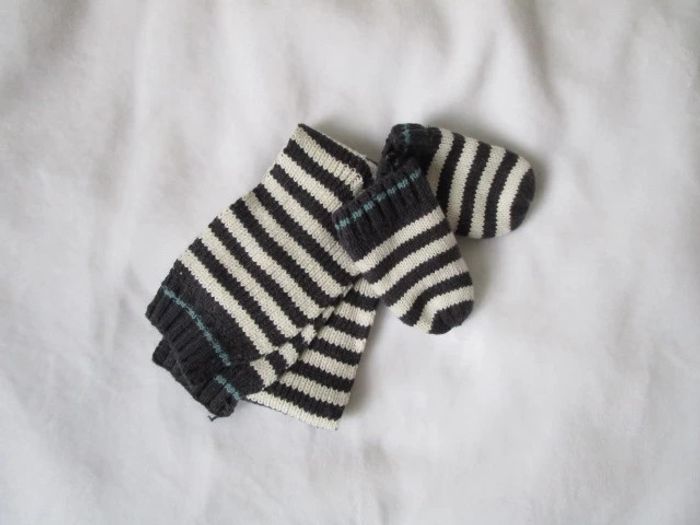 Ensemble comprenant une écharpe et une paire de moufles rayées bleu marine et blanc Pas d'étiquette de marque ni de taille L'écharpe mesure 82*10 cm Les mofles sont doublées polaire et mesurent 12 cm de long NEUF, il y a encore le petit lien plastique #mamanbrade59garçon12mois #mamanbrade59fille12mois #mamanbrade59fille18mois #mamanbrade59garçon18mois