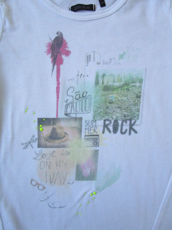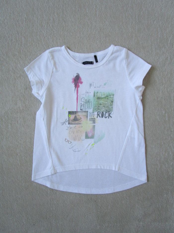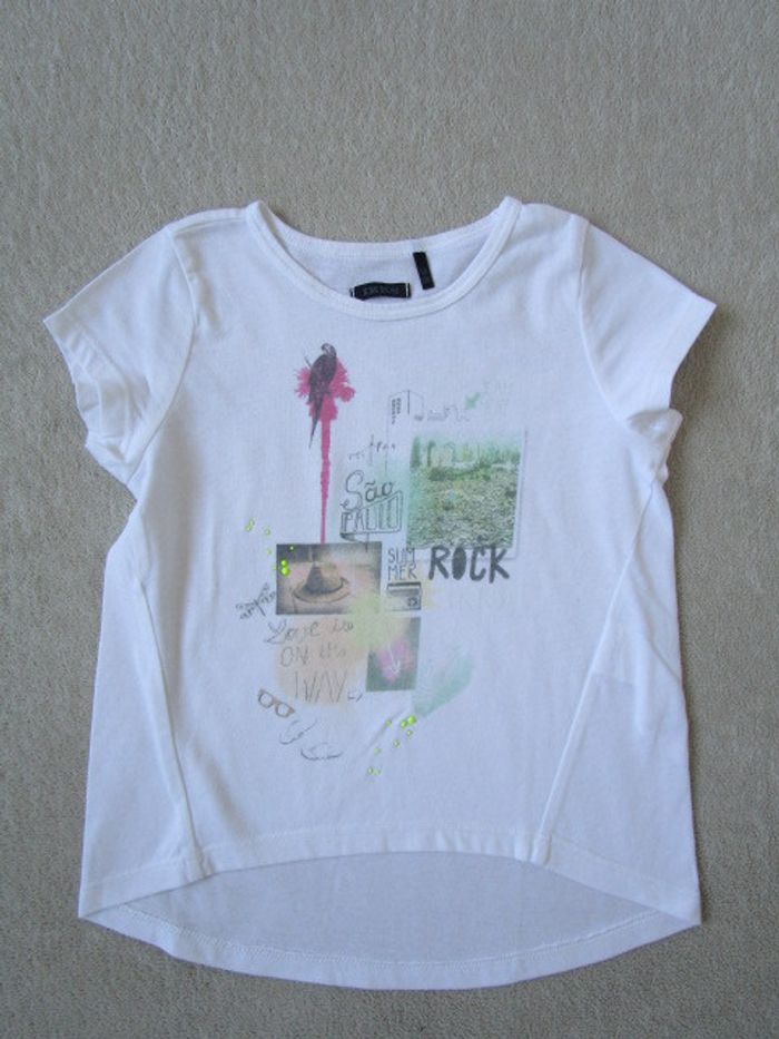 T-shirt écru de marque IKKS taille 5 ans Motif sur le devant Arrondi et plus long à l'arrière 100% coton En parfait état, très peu porté #mamanbrade59fille5ans