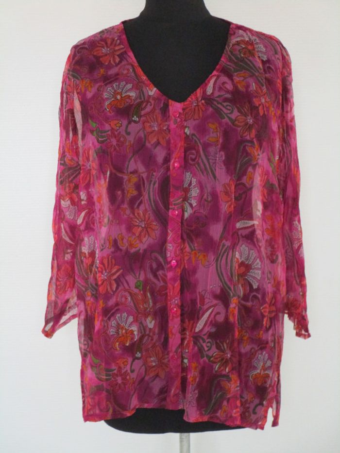 Tunique en voile imprimé fuchsia Jac Jac 40 NEUVE - photo numéro 1