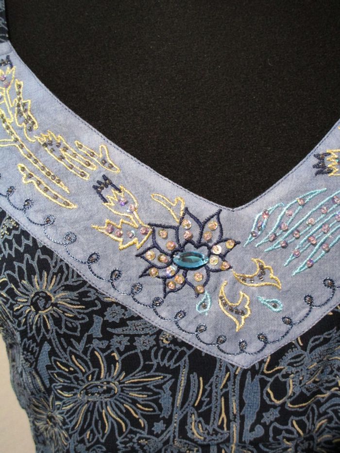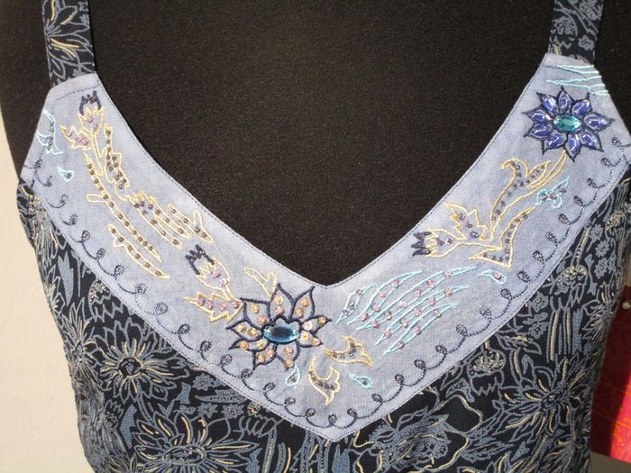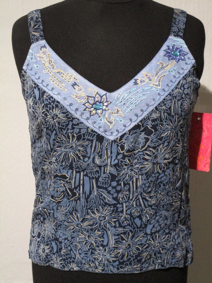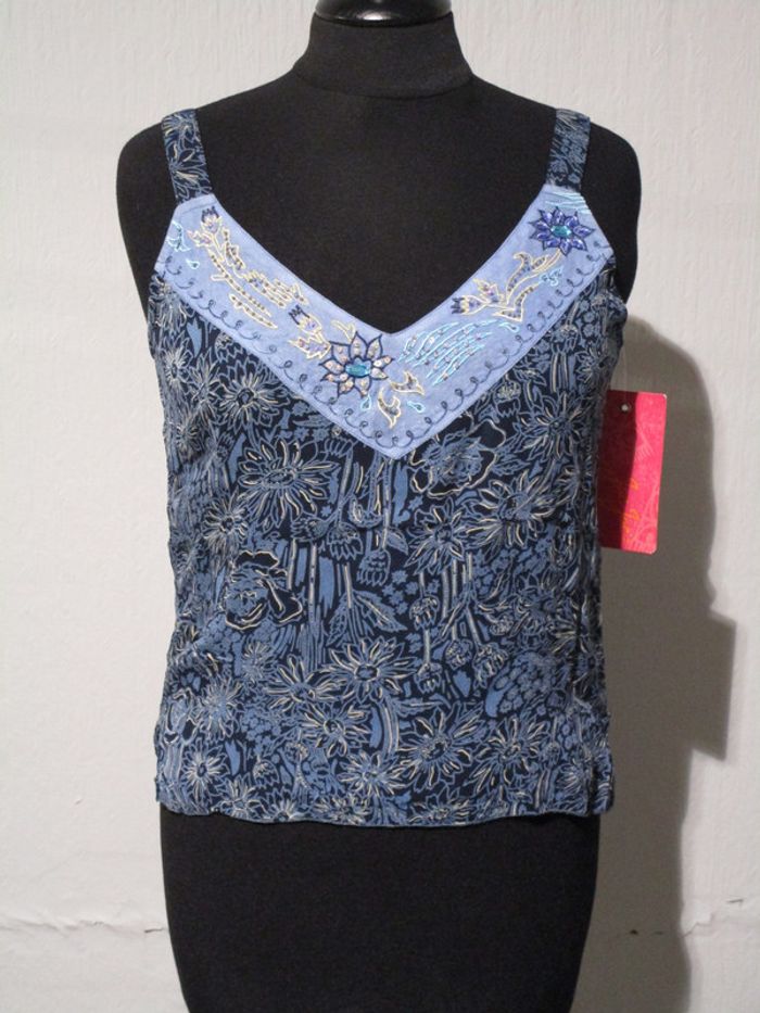 Croc top/Blouse courte bleu imprimé de marque Jac Jac taille 2 (correspond à une taille 40 habituellement mais taille petit, correspond plutôt à une taille 38) En voile, doublé Bande bleu ciel avec broderies et perles au niveau du décolleté Fermeture sur le côté Pas d'étiquette de composition mais doit être 100% viscose Largeur aisselle à aisselle : 43.5 cm Longueur : 53 cm NEUF avec étiquette Prix boutique : 39 euros #mamanbrade59femme38