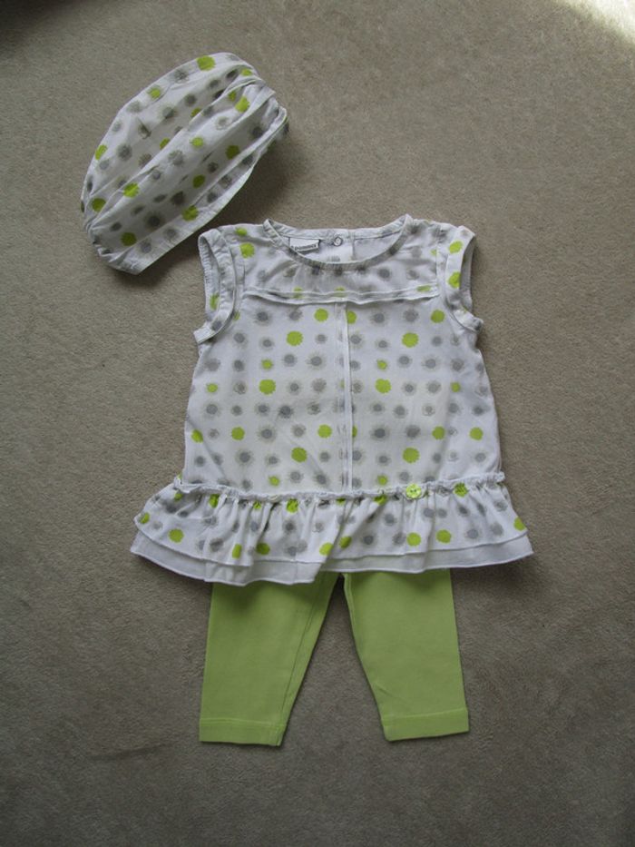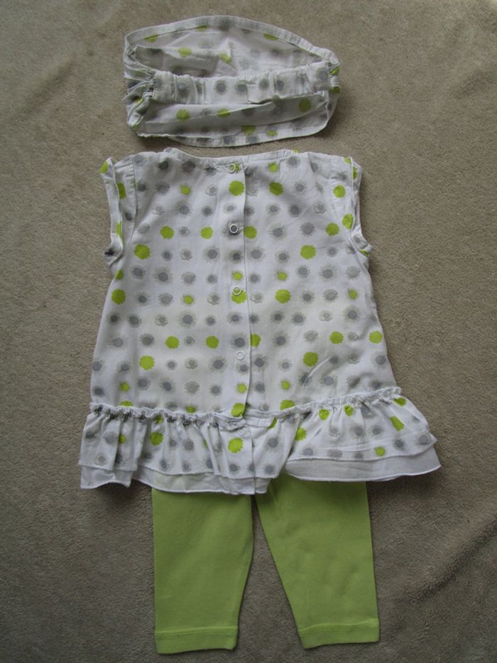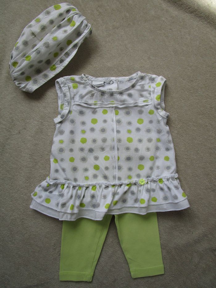 Ensemnle de marque 3 Pommes taille 3 mois Petite robe qui s'ouvre entièrement dans le dos par système de pressions, bandeau assorti et legging vert anis qui s'accorde parfaitement de marque Obaïbi taille 6 mois (taille petit) En très bon état #mamanbrade59fille3mois