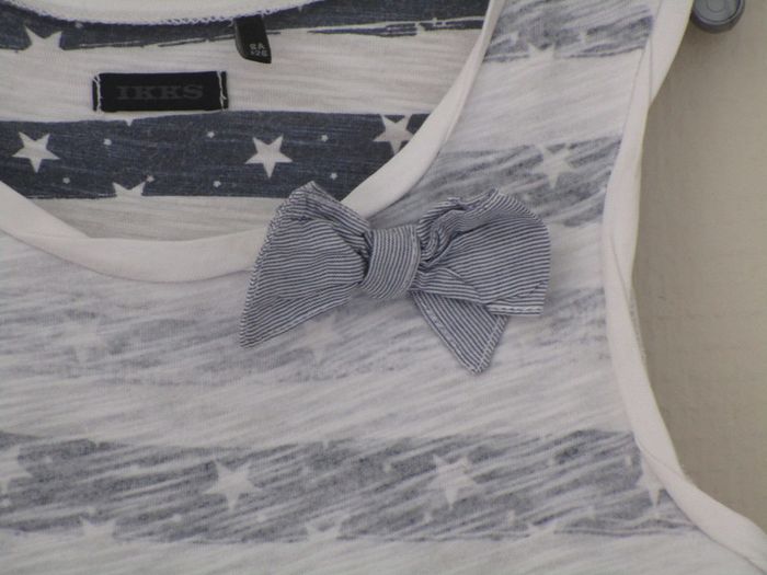 Robe de marque IKKS taille 8 ans Haut rayé blanc et bleu avec petites étoiles, effet superposé sur une jupette blanche à motif petites étoiles bleues et doublure bleue Petit nœud à gauche de l'encolure En très bon état #mamanbrade59fille8ans