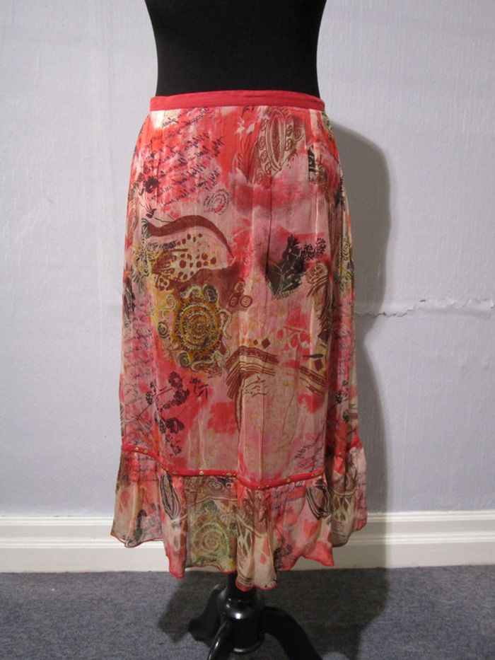 Jupe longue corail en voile imprimé Jac Jac 40 NEUVE - photo numéro 1