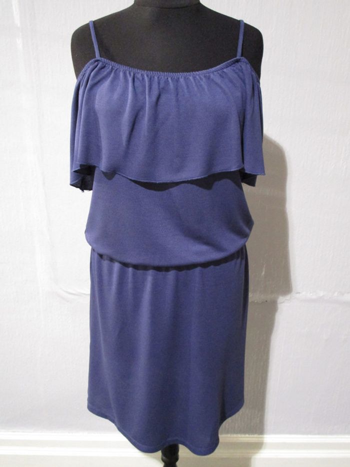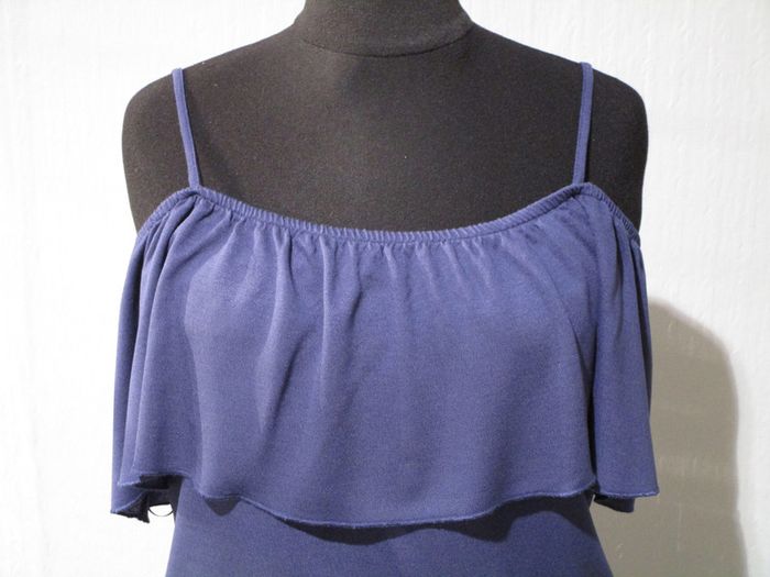Robe bleu nuit Grain de Malice taille 38 Volant dans le haut Épaules dénudées Resserrée à la taille 100% viscose Largeur aisselle à aisselle : 49 cm Longueur à plat : 102 cm NEUVE avec étiquette #mamanbrade59femme38