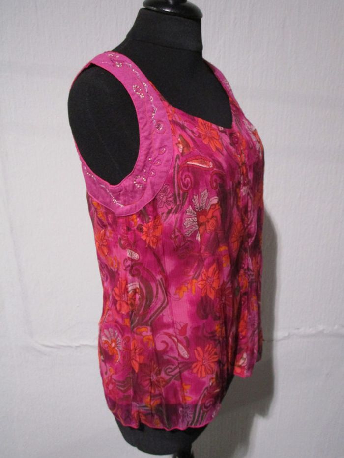 Blouse en voile fuchsia imprimé Jac Jac 40 NEUVE - photo numéro 5